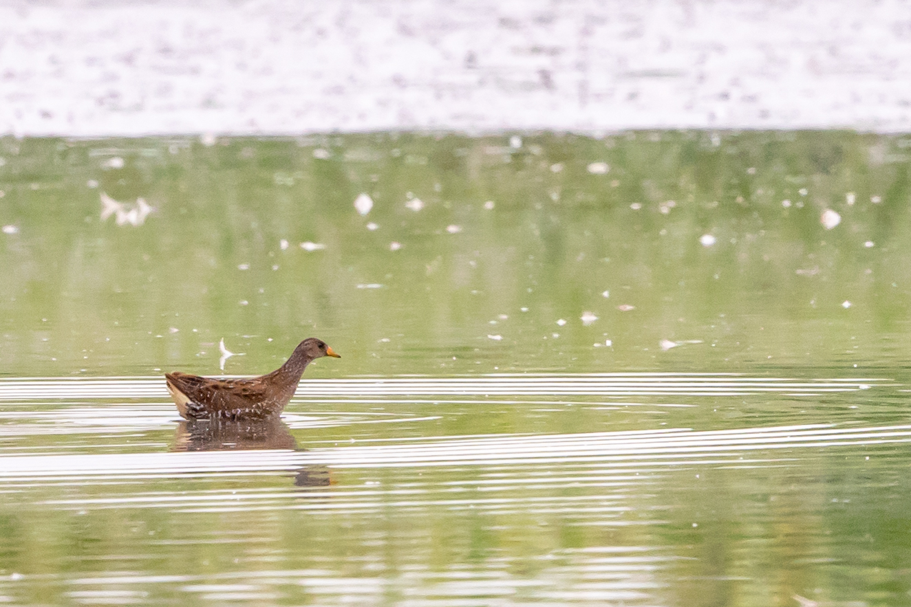 The pool is a short walk from the road and as I walked across I could see 4 other people already pointing their scopes at it. On questioning them though it was bad news - no show and it was now getting towards 8.30. There were up to 7 snipe, a green sandpiper and a number of ducks pottering about but no sign of the crake. They are notoriously skulky birds though it was not impossible it was still hiding. Finally, as another couple of birders arrived it gave itself up, popping out from rushes on the side of the pool then darting back in again.